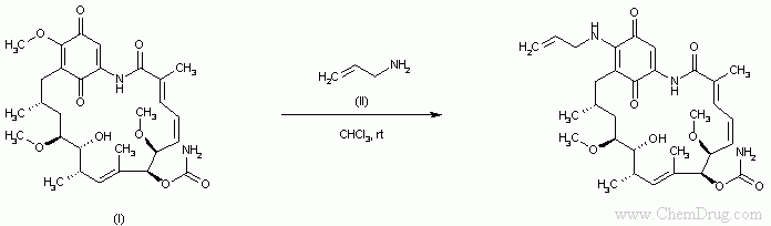 - 〖合成方法〗The title compound was prepared by displacement of the 17-methoxy group of geldanamycin (I) with allylamine (II) in chloroform at room temperature.