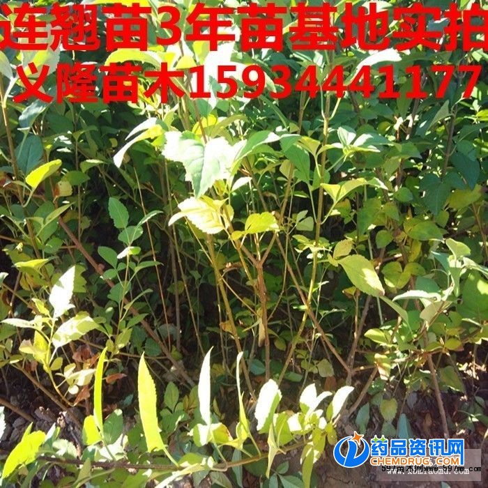 4、种子育苗:连翘种子的种皮较坚硬,不经过预处理,直播圃地,需1个多月时间才发芽出土。因此,在播前可进行催芽处理。新引种地区可采用此法。具体方法为:选择成熟饱满的种子,放到30℃左右温水中浸泡4小时左右,捞出后掺湿砂3倍用木箱或小缸装好,上面封盖塑料薄膜,置于背风向阳处,每天翻动2次,经常保持湿润,10多天后,种子萌芽,即可播种。播后8-9天即可出苗,比不经过预处理种子可提前出苗20天左右。如土地干旱,先向畦内浇水,水渗下表土稍松散时播种。春播在“清明”前后,冬播在封冻前(种子不用处理,第二年能出苗)。播时,在整好的畦面上,按行距20—25厘米,开1厘米深的沟,将种子掺细砂,均匀地撒入沟内,覆土搂平,稍加镇压。10-15天幼苗可出土。每亩用种量2-3公斤左右。覆土不能过厚,一般为1厘米左右,然后再盖草保持湿润。种子出土后,随即揭草。苗高10厘米时,按株距10厘米定苗,第二年4月上旬苗高30厘米左右时可进行大田移栽。
