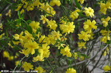 连翘(拉丁学名:Forsythia suspensa):落叶灌木,香港俗称一串金,是木樨科连翘属植物。连翘早春先叶开花,花开香气淡艳,满枝金黄,艳丽可爱,是早春优良观花灌木,株高约3米,枝干丛生,小枝黄色,拱形下垂,中空。叶对生,单叶或三小叶,卵形或卵状椭圆形,缘具齿。花冠黄色,1-3朵生于叶腋;果卵球形、卵状椭圆形或长椭圆形,先端喙状渐尖,表面疏生皮孔;果梗长0.7-1.5厘米。花期3-4月,果期7-9月。