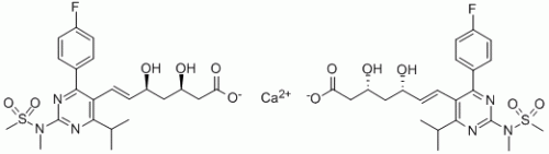 中文同义词: 超级他汀钙盐;罗舒伐他汀;瑞舒伐他汀;(3R,5S,6E)-7-[4-(4-氟苯基)-6-异丙基-2-(N-甲基-N-甲磺酰胺基)-5-嘧啶]-3,5-二羟基-6-庚烯酸钙;超级他汀钙;罗舒伐他汀钙;瑞舒伐他汀钙;罗苏伐他汀钙