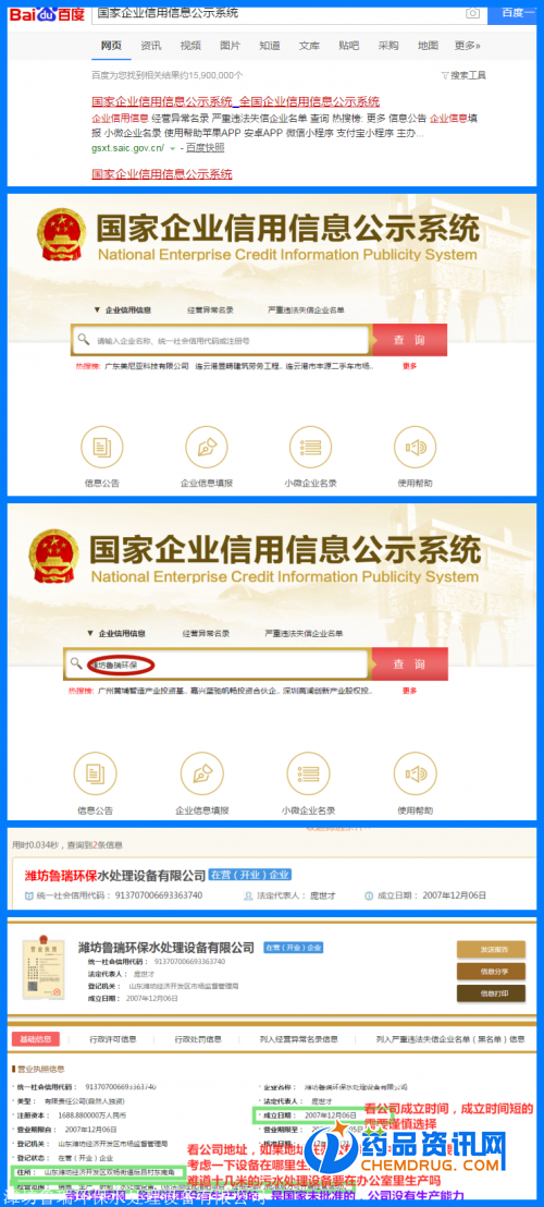 你买的污水设备厂家是不是只有一个“营业执照”,是不是刚刚成立几个月或不到两年的新公司,查看注册地址是否在xx街xx楼xx号,难道几十米的污水设备能在几十平米的办公室里生产吗?营业执照里面的经营范围是不是没有“生产”项,那么恭喜你选择了名副其实的“皮包公司”或者“散乱污”黑作坊,目前已有很多老朋友被“三无”产品和“散乱污”企业(http://www.chemdrug.com/company/)害得不轻,建 议你在购买设备前认真阅读以下八大注意事项!