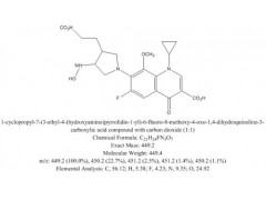 莫西沙星为氟喹诺酮类抗菌药。DNA拓扑异构酶抑制剂,可用于**金葡菌、流感杆菌、肺炎球菌等引起的社会获得性肺炎,慢性支气管炎急性发作,急性窦炎等。属第四代喹诺酮类抗菌药物(http://www.chemdrug.com/),是新一代抗菌谱广的抗生素。该品对常见的呼吸道病菌,如肺炎链球菌、嗜血流感杆菌、卡他莫拉汉菌以及部分金黄色葡萄球菌都具有很强的抗菌活性.特别是对肺炎链球菌,抗菌作用强大。临床用于**急性窦腺炎、慢性支气管炎的急性发作)社区获得性肺炎,以及无并发症的皮肤感染和皮肤软组织感染。本品特点是几乎没有光敏反应,具有良好的组织穿透力,在肺组织中也可达到很高浓度,是**呼吸道感染较好的药物。